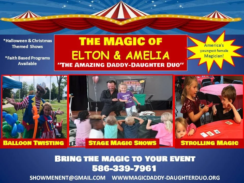 The Magic of Elton & Amelia is a High Energy, Audience Interactive, stage/platform style show.